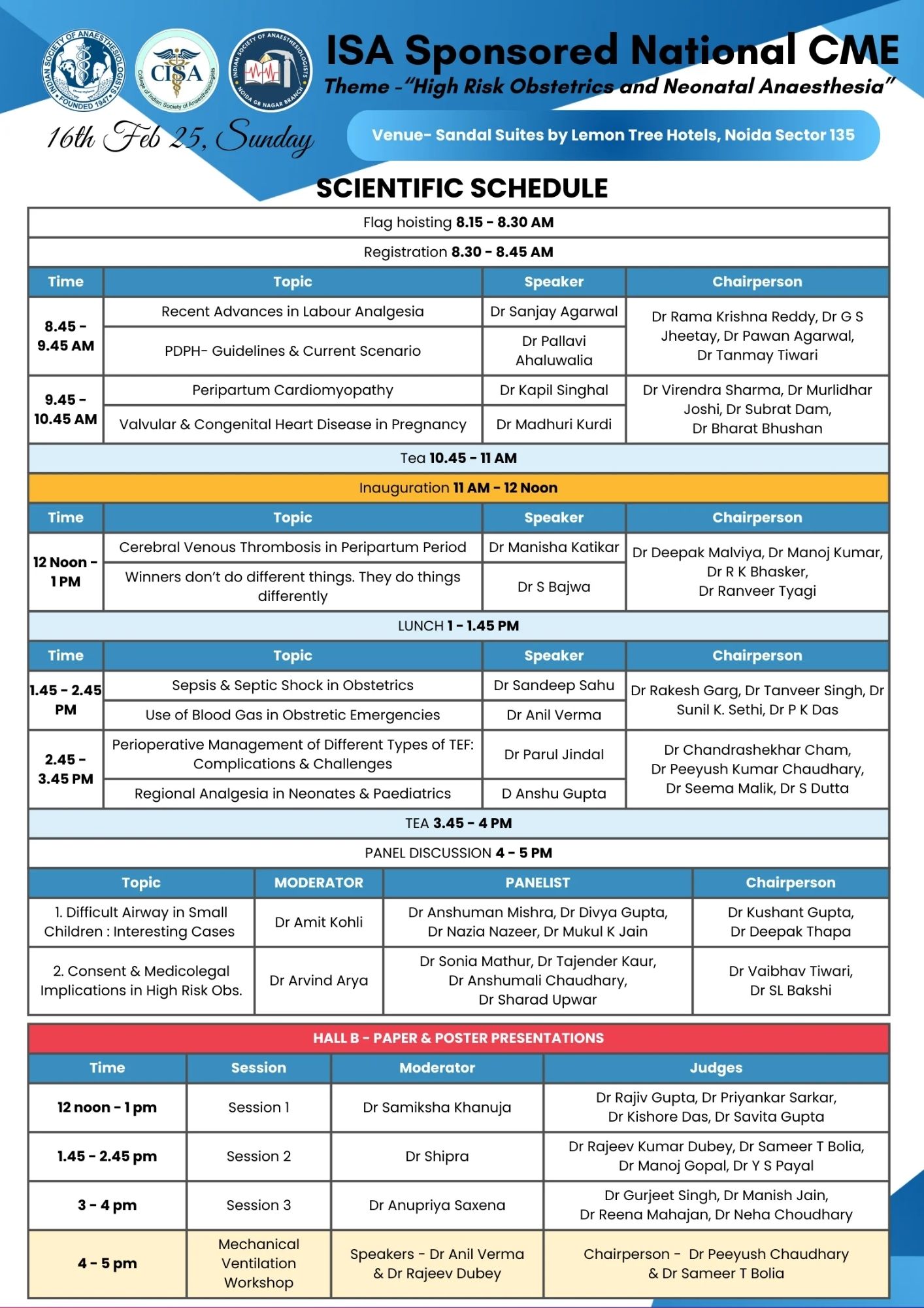 Branch - ISA Noida Date - 2025-02-16 Venue - Sandal Suites, Lemon Tree Hotels, Noida Description - Theme -“High Risk Obstetrics and Neonatal Anaesthesia”