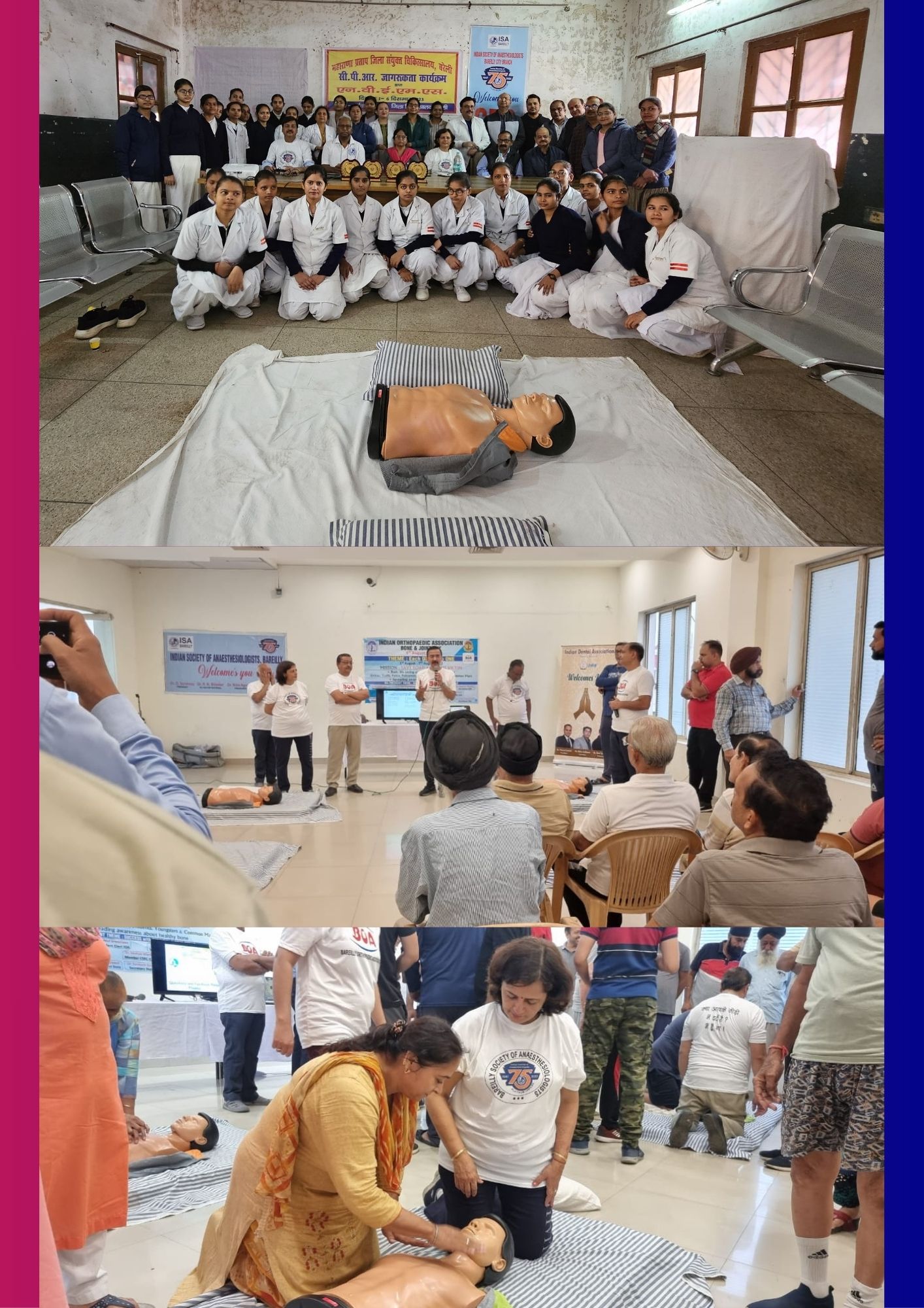 Description - Public awareness CPR hands on Workshops at Administration Bareilly, Police line, Rotary clubs, Parks, Different Schools including Boarding school of Nainital- St. Joseph's & All Saints College Nainital.